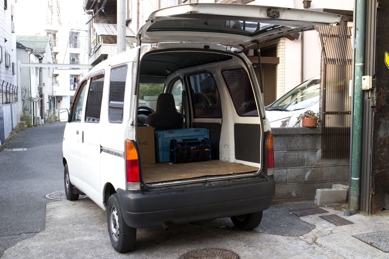 エアコン取り付けや修理はもちろんLED蛍光灯などの電気工事において使用する車両になります。